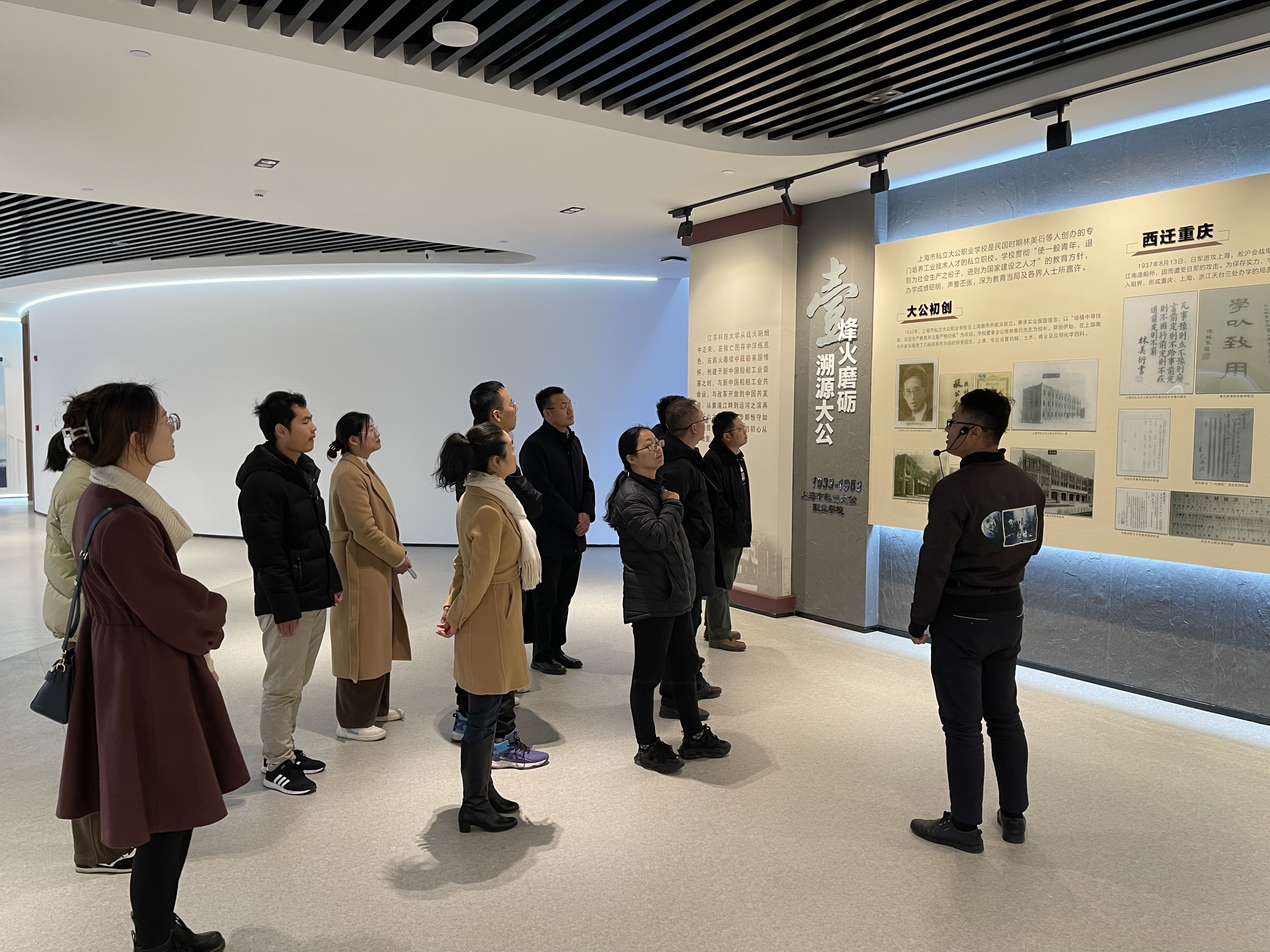 在张强副部长的引导下,大家依次参观了校史展厅、蚕桑特色展厅、船舶特色展厅、军工科研成果展示厅,馆内的文字、图片、实物、影像交互表达,生动呈现初心如磐、与时俱进、精彩奋斗的“江科大画卷”。大家沉浸式回顾、体悟江科大的峥嵘岁月,深入了解学校办学90年来的发展历程,从最初的艰苦创业到现在的辉煌成就,一代代江科大人筚路蓝缕,艰苦奋斗,生动诠释了“江海襟怀,同舟共济,扬帆致远”的“船魂”精神。