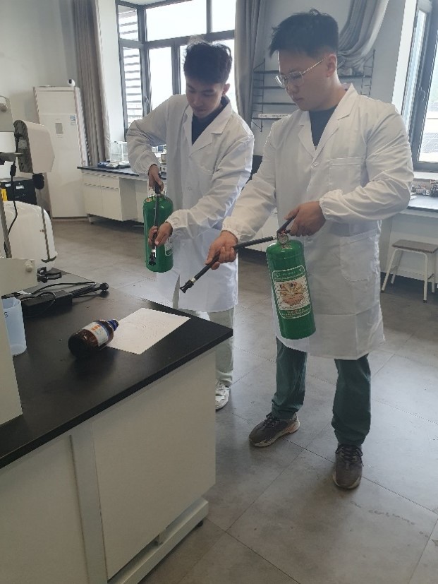 本次演练模拟了实验室危险化学品泄漏并引发燃烧的安全意外,重点展示了实验人员面临的安全风险以及应对措施。师生演练了化学试剂的安全取用规范和灭火器的正确使用方法;针对皮肤接触化学品的情况,示范了清水冲洗和及时就医等应急处置措施;并进一步演练了如何快速准确地进行事故报告,以确保有效沟通并采取后续应急措施的途径和方法。