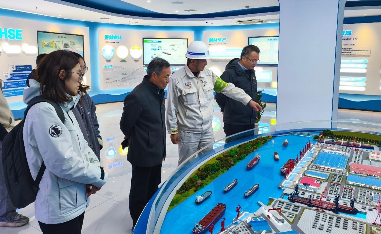 随后,扬州中远海运重工有限公司的工作人员带领全体党员参观了高清av馆,支部成员深入了解了企业发展历史。同时,支部师生一起参观了正在舾装的集装箱船。