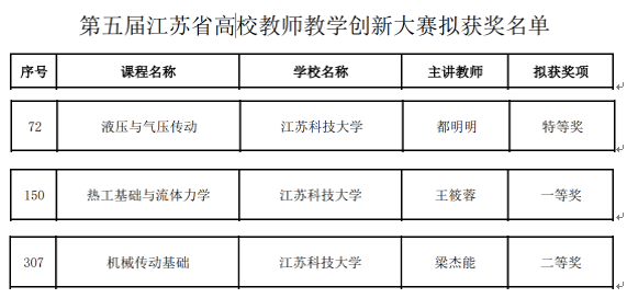 近日,第五届江苏省高校教师教学创新大赛拟获奖名单公布,高清av 教师表现优异,获特等奖1项,一等奖1项,二等奖1项,获奖数量位居全校第一,充分展现了高清av 在教学改革与创新方面的突出成果。