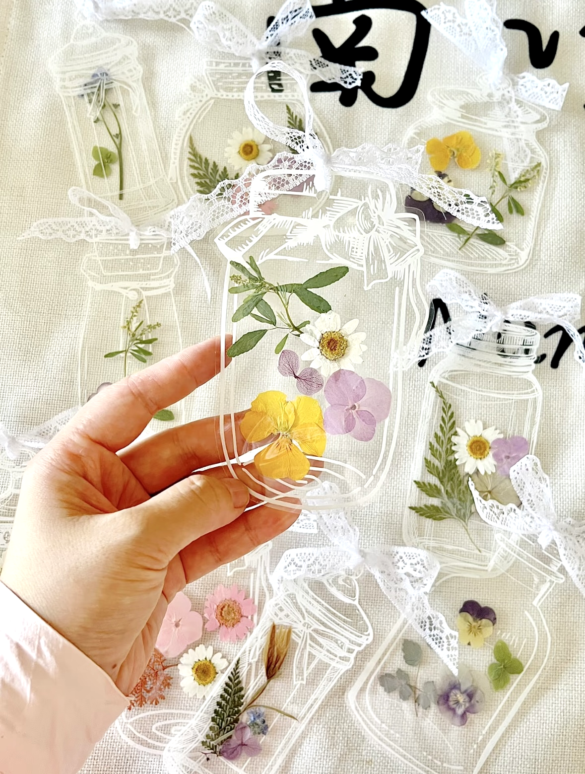 活动现场,透明的模具与五彩斑斓的干花、叶片有序摆放。参与者们围坐在一起,目光专注,小心翼翼地挑选心仪的花材。他们将形态各异的花瓣、叶片精心排列组合,嵌入透明模具之中,仿佛把整个春天都收纳其中。这些模具造型多样,有可爱的瓶状、简约的几何形状等,每一个都像是一个微型的艺术容器。