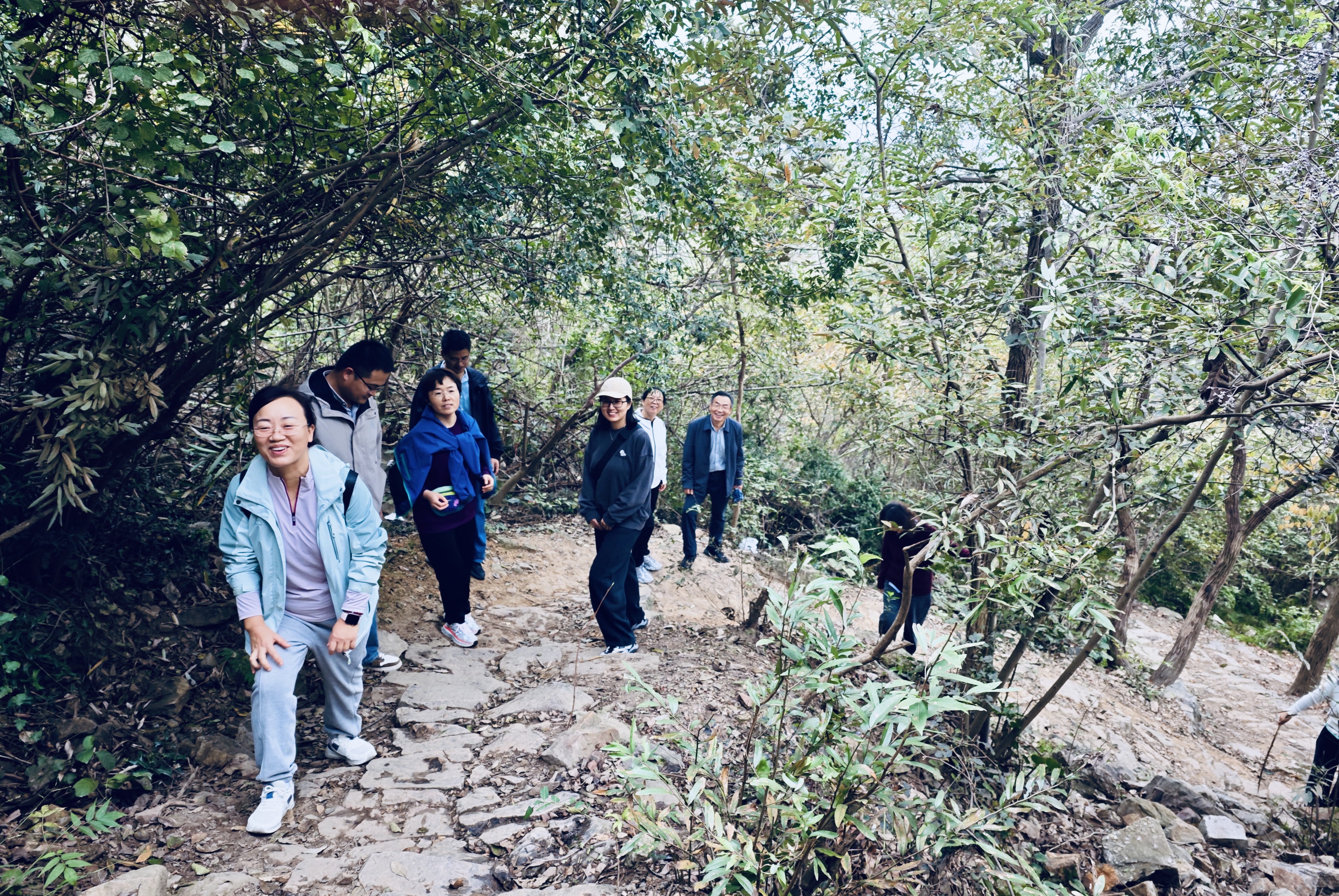 活动中,教职工们沿着蜿蜒的步道稳步前行。秋日的山林层林尽染,大家不时驻足欣赏漫山秋色,时而围坐交流 —— 从教学科研聊到生活趣事,从学院发展谈到个人成长,话题不断延伸,欢声笑语在林间久久回荡,轻松愉悦的氛围让彼此的距离悄然拉近,团队的凝聚力在不知不觉中愈发浓厚。