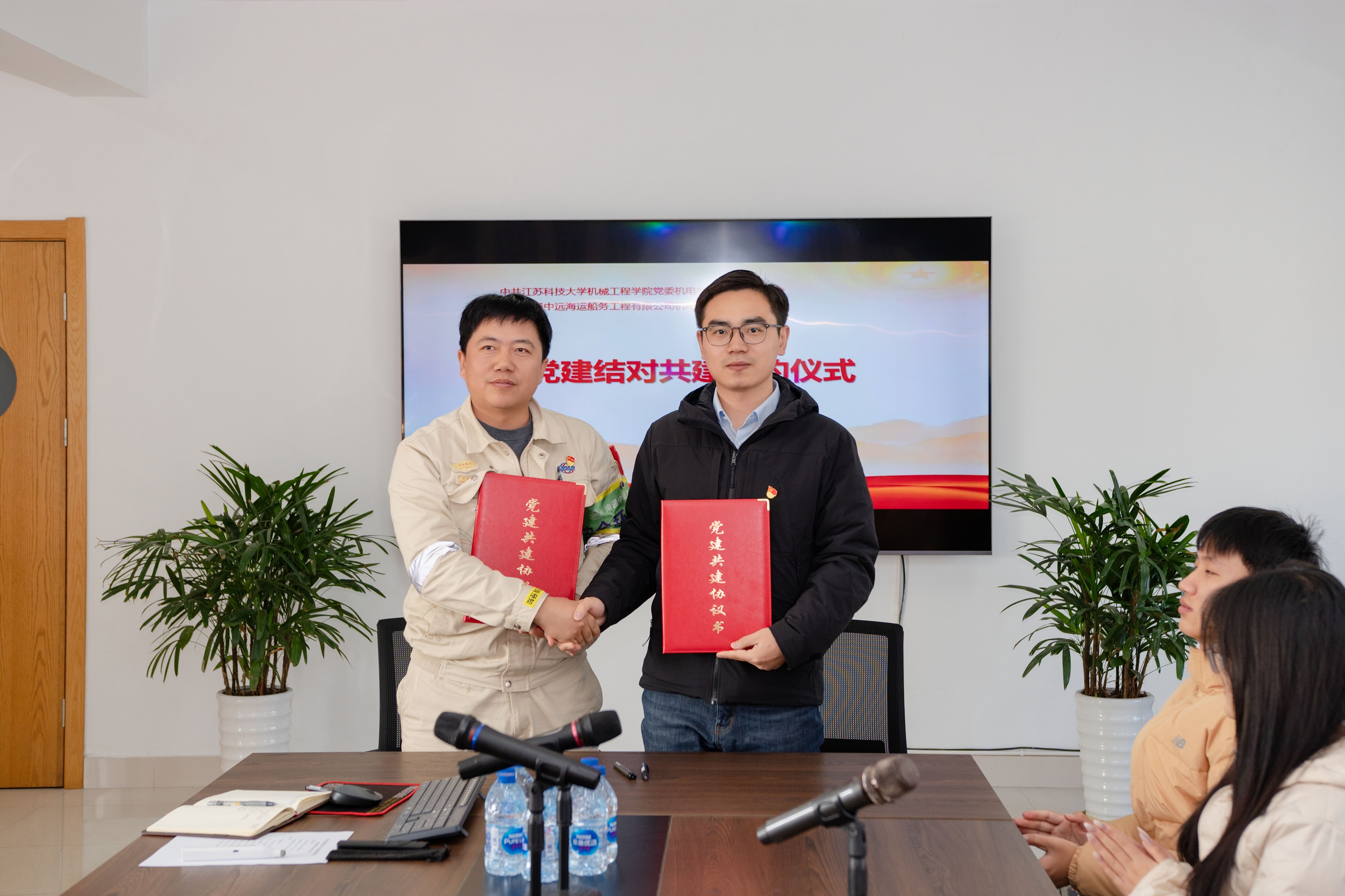交流会上,双方党支部正式签署党建结对共建合作协议。南通中远海运船务工程有限公司机电车间党支部书记张海峰与高清av 机电学生党支部书记蒋达分别代表双方签约。
