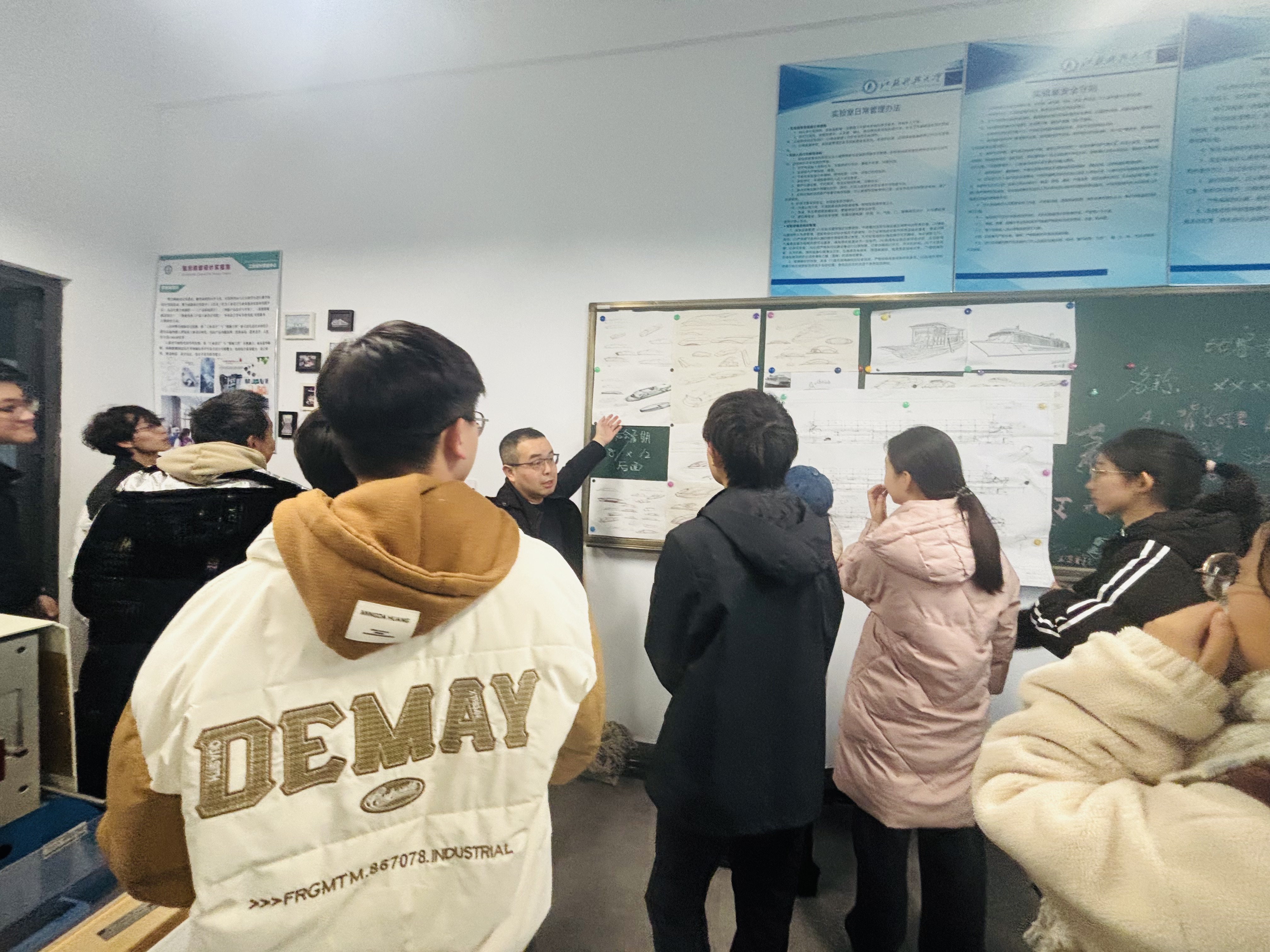 刘老师首先围绕工业设计专业实验室的整体架构展开介绍,系统阐述了实验室涵盖的两大核心平台---科研学科平台(包含实验室、工作室及科研模块)与本科教学课程平台(覆盖专业课程实验、模型制作公共平台、造型基础教学平台三大板块),并深入讲解了两大平台下设的具体研究方向。随后,刘老师带领同学们逐一走访参观了豪华邮轮舱室设计实验室、木工实验室、人机工程与虚拟仿真实验室、整合创新设计实验室、信息与交互设计实验室、(油泥)模型制作室、数字化设计与制作实验室及文创产品设计与品牌策划工作室,让新生们直观领略了专业实践场地的功能布局与应用场景。