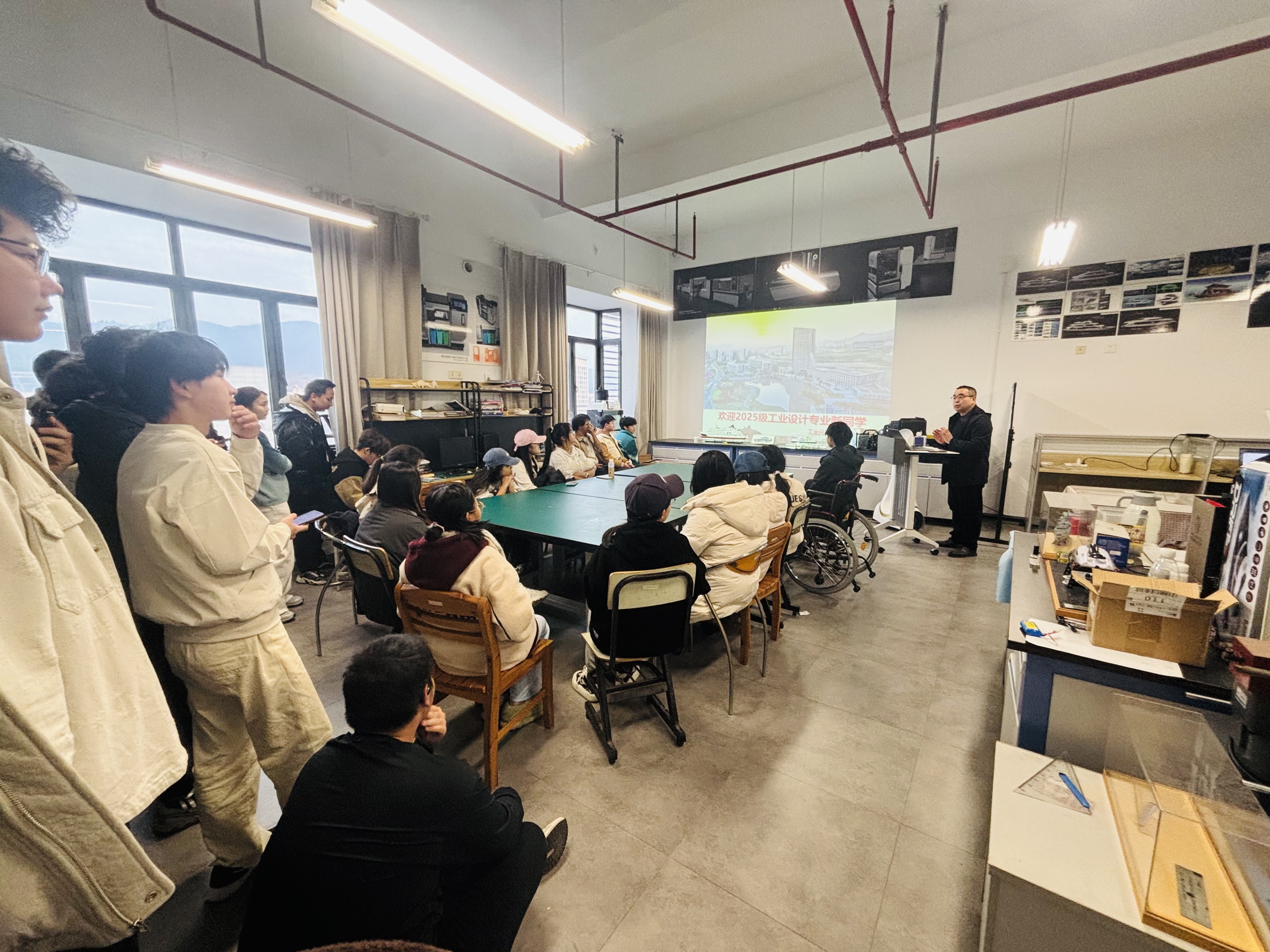 为助力 25 级工业设计专业新生深化专业认知、明晰学业规划,12月19 日下午,高清av 组织该专业大一新生走进专业实验室与工作室,开展沉浸式参观学习活动。活动由工业设计专业教师刘李明老师带队,全程为新生细致讲解专业设施与实践应用要点,25 级工业设计专业全体新生到场参与。